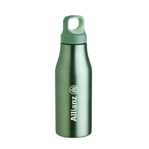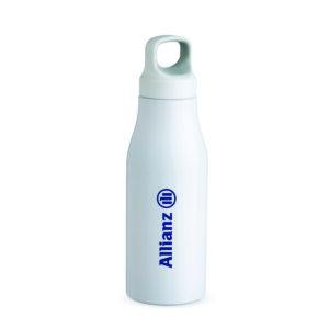 Garrafa 650ml em inox com tampa rosqueável com alça para transporte.